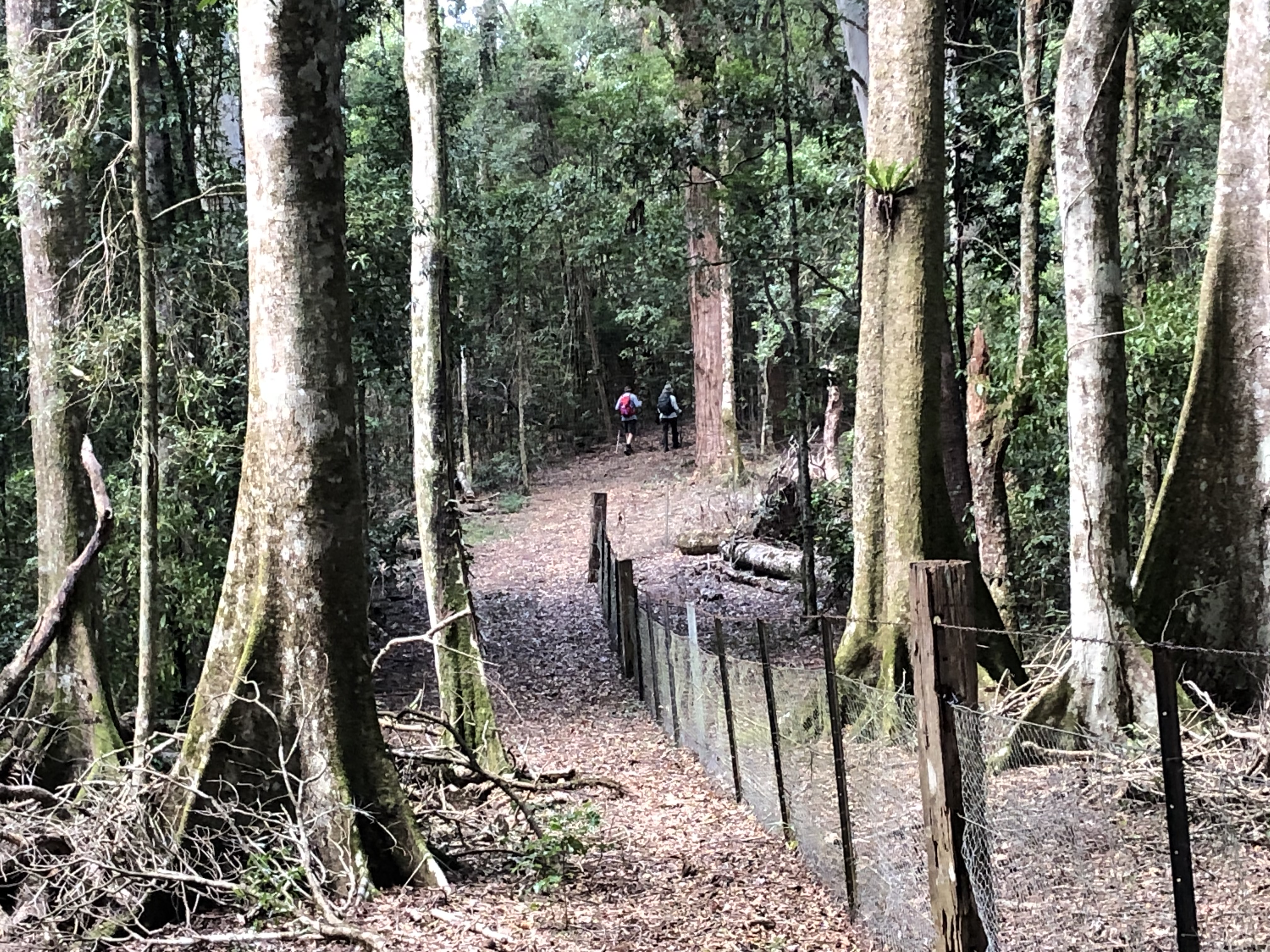 Day 2 (Approx. 12km) The dawn chorus of birds and a hot cuppa by the campfire sets the tone for the second day of our walk. After packing lunch and enjoying a hearty breakfast prepared by our hosts we return to where we left off yesterday for the invigorating climb back up to the Fence. Much of this section is through rainforest at altitudes ranging from 650m to 782m. There are some spectacular outlooks and some challenging ‘Big Dippers’ as the Fence dives down steep slopes to a saddle below then climbs back up again to regain the meters lost!